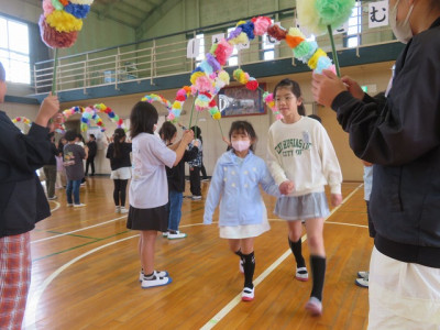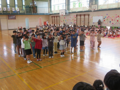 先週、1年生を迎える会がおこわなわれました。全校が集まる場が初めての1年生。人の多さに少し驚きながらもしっかりと楽しんでいました。お兄ちゃん、お姉ちゃんたちは、今日の日のために出し物を練習したり、プレゼントを作ったりしてくれました。一生懸命ダンスを踊ったり、クイズを出したりする姿に、先生たちも心の中で「がんばれ」のエールを送ったり、思わず笑顔になったりしました。全校で1年生を迎えることができました。